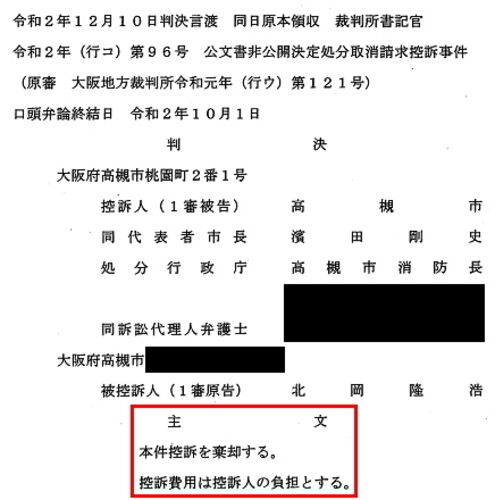 今日は13時15分から、大阪高等裁判所で第2救急活動公開請求訴訟の控訴審の判決言渡しがありました。高槻市の控訴が棄却され、大阪地裁での勝訴に続き、大阪高裁でも勝訴しました。この訴訟は、三島救命救急センターが、現在の国道沿いの場所から、阪急…